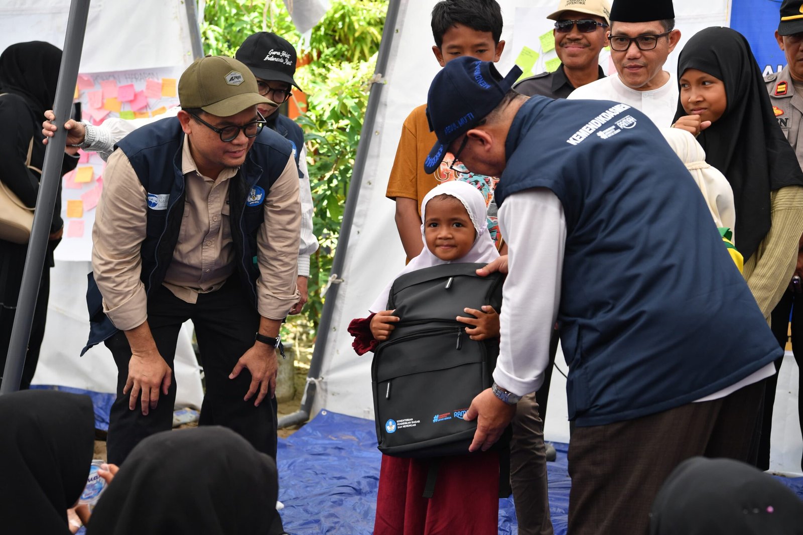 Bantuan tahap awal yang diberikan di Sumbar terdiri atas 1.500 paket _school kit_ untuk jenjang PAUD hingga SMA/SMK, 100 paket _family kit_ untuk guru, paket sembako, serta 25 tenda sekolah darurat. Dua tenda telah berdiri dan digunakan sebagai ruang belajar sementara, sementara tenda lainnya akan didirikan sesuai kondisi lokasi. Kehadiran tenda darurat diharapkan dapat mempercepat kembalinya pembelajaran tatap muka di daerah terdampak.