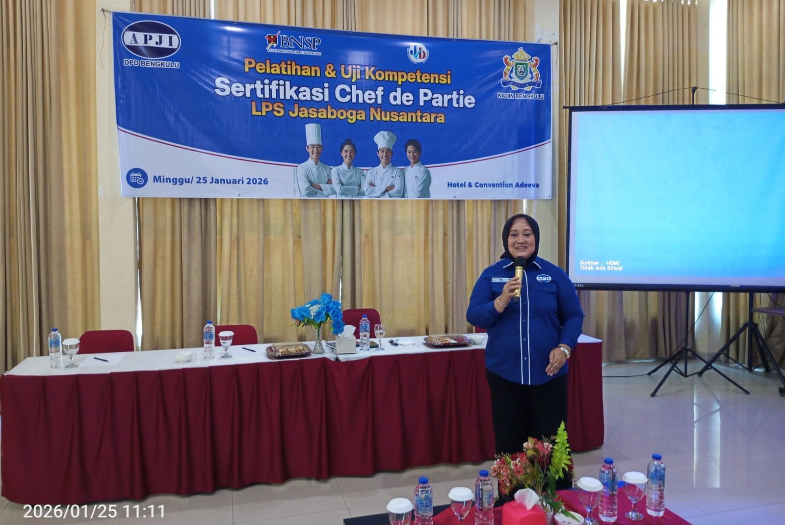 “APJI bergerak di bidang jasa boga dan memiliki tanggung jawab membantu dapur-dapur yang belum memiliki standar kompetensi. Oleh karena itu, kami melaksanakan pelatihan dan sertifikasi agar pelaku usaha memiliki keahlian yang teruji,” ujar Trisna, di aula Hotel Adeeva & Convention Bengkulu, Minggu (25/1/2026).